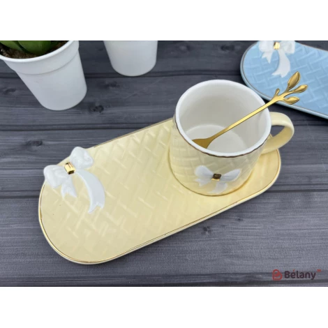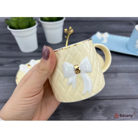 Керамічна чашка із блюдцем "Softy bow" кремова