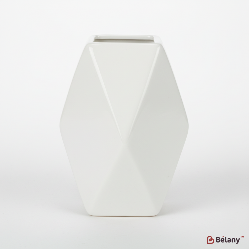 Ця біла керамічна ваза має сучасний дизайн у формі призми, який додасть оригінальності вашому інтер'єру. Її гладка поверхня і чисті лінії роблять цю вазу чудовим акцентом для будь-якого приміщення.
