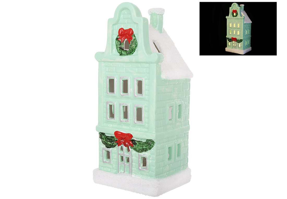 Керамічний Дім з LED підсвічуванням і білою присипкою, 9.3*8.3*22см, колір - світло зелений