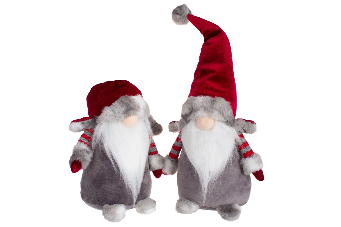 М'яка іграшка гном, 2 дизайни, 49см та 27см, колір - сірий з бордо