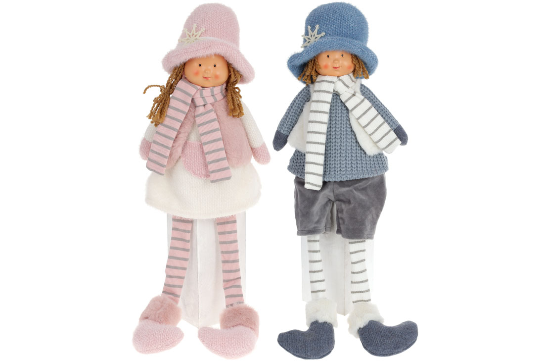 М'яка іграшка Сидяча Лялька, 55см, 2 дизайни: Дівчинка та Хлопчик, колір - рожевий та блакитний