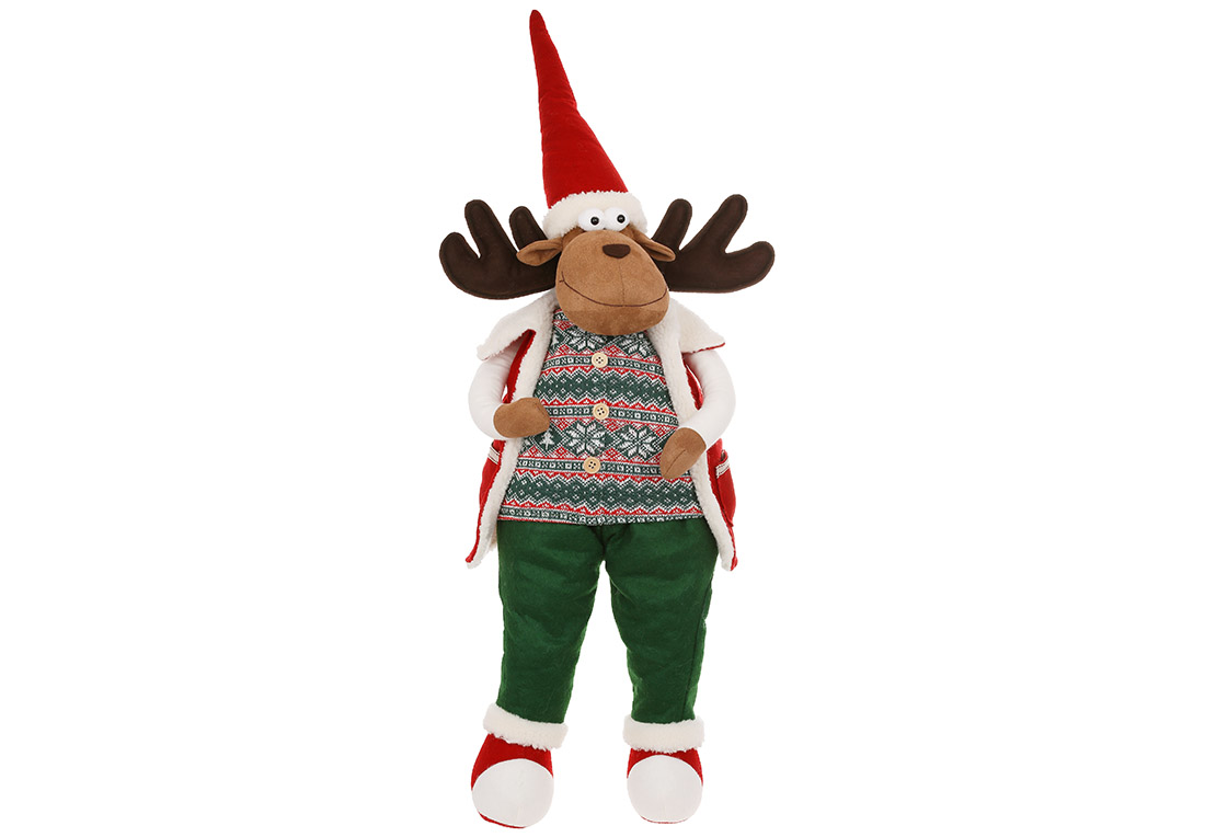 М'яка іграшка сидячий Олень у жилетці, 31*22*85см, колір - червоний із зеленим