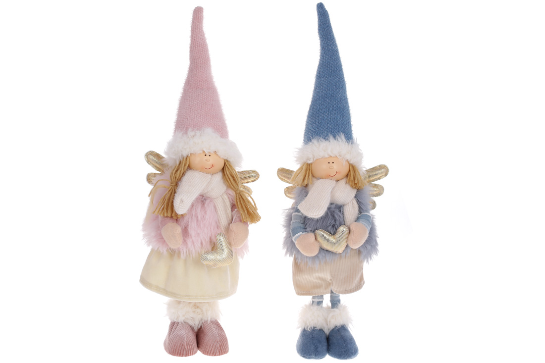 М'яка новорічна іграшка Янгол, 50см, 2 дизайни: Дівчинка та Хлопчик, колір - рожевий та блакитний