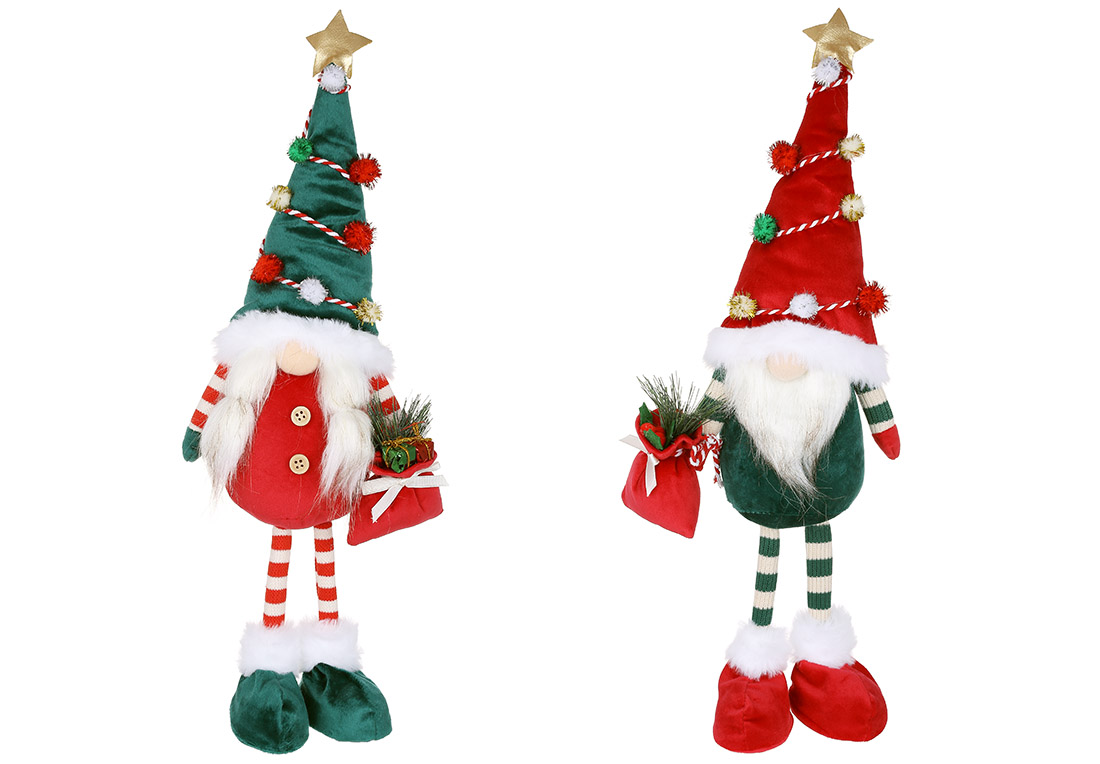 М'яка новорічна іграшка Гном 45см, колір - червоний із зеленим, 2 види: Дівчинка і Хлопчик