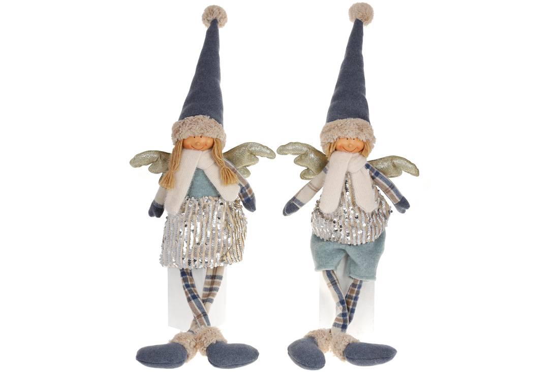 М'яка новорічна іграшка Сидячий Янгол, 85см, 2 дизайни: Дівчинка та Хлопчик, колір - синій та паєтки шампань
