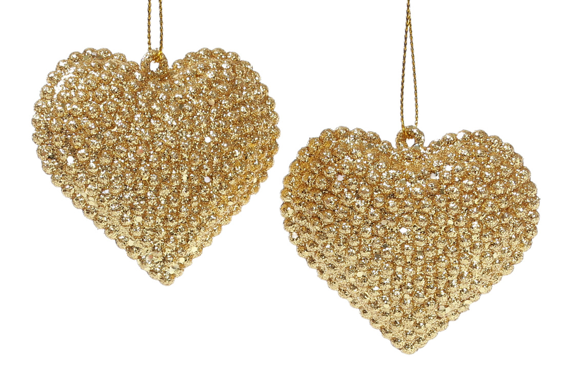 Набір (2шт) ялинкових прикрас Серце 6см, колір - золотий гліттер