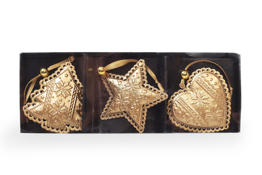 Набір (3шт) новорічних прикрас-підвісок 9см, колір - золото