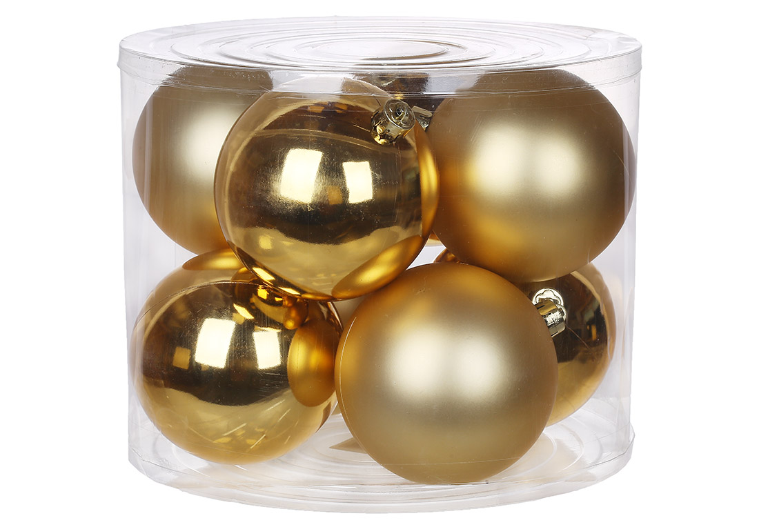 Набір ялинкових куль 10см, колір - золото, 8шт: 4шт - глянець, 4шт - матовий