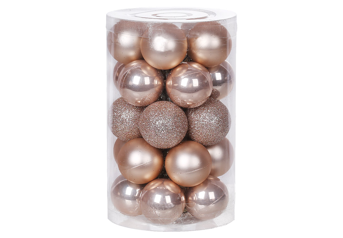 Набір ялинкових кульок 3см, колір - пудровий, 25шт: 10шт - матовий, 10шт - перламутр, 5шт - гліттер