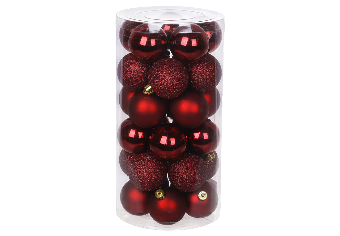 Набір ялинкових куль 5см, колір - марсала, 30шт: 10шт - гліттер, 10шт - матовий, 10шт - глянець