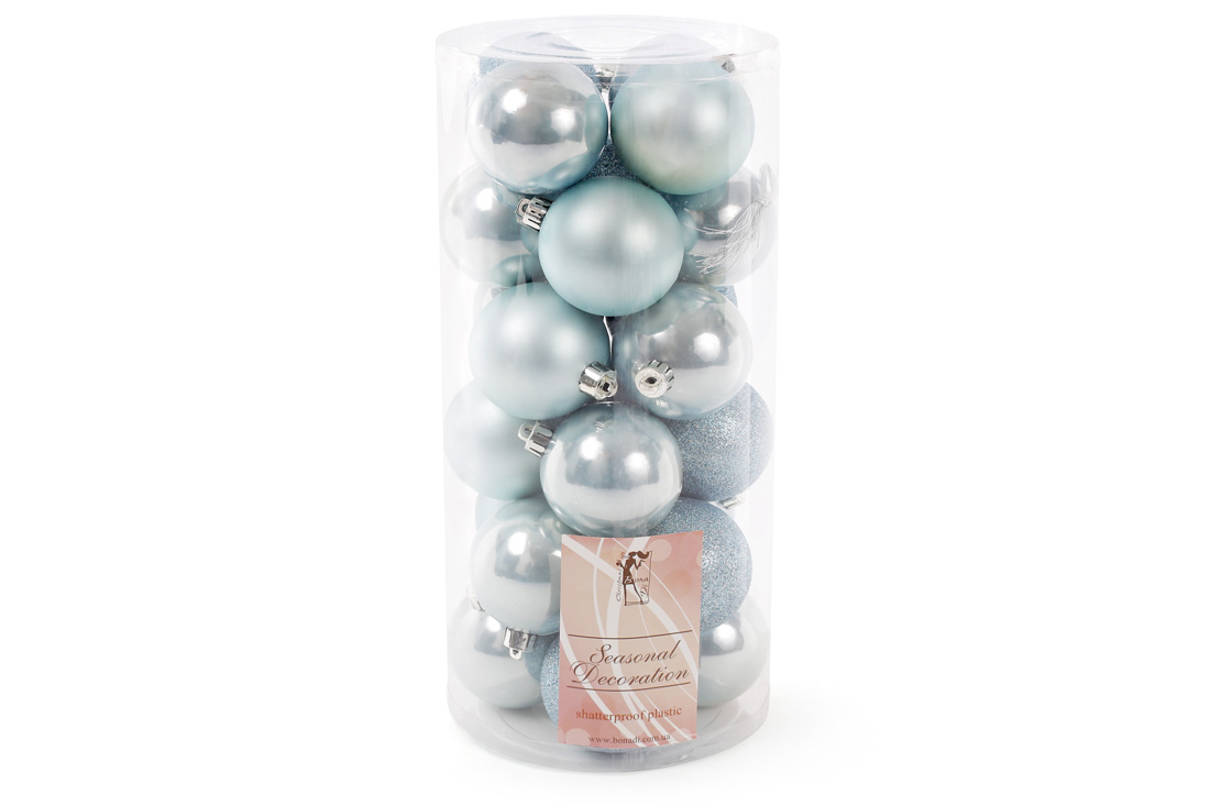 Набір ялинкових куль 6см, 24шт; колір - блакитний, 12шт - перламутр, по 6шт - глітер, матовий