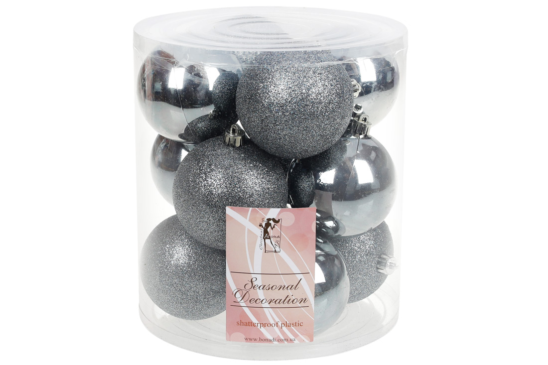 Набір ялинкових куль 8см, колір - сталевий синій, 12шт: гліттер, глянець - по 6шт