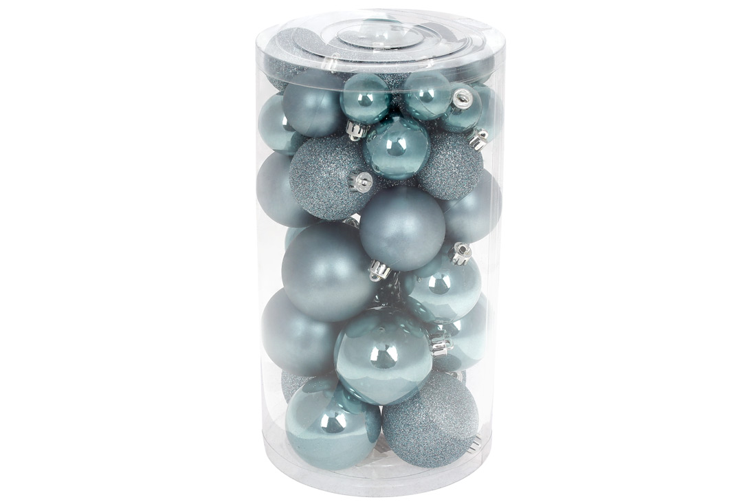 Набір ялинкових куль, колір - блакитний світанок, 40шт - 6см, 5см, 4см, 3см: 4шт - перламутр, 3шт - гліттер, 3шт - матовий для кожного розміру
