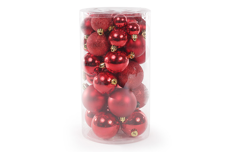 Набір ялинкових куль, колір - червоний, 40 шт - 6см, 5см, 4см, 3см: 4 шт - глянець, 3 шт - мат, 3 шт - гліттер для кожного розміру