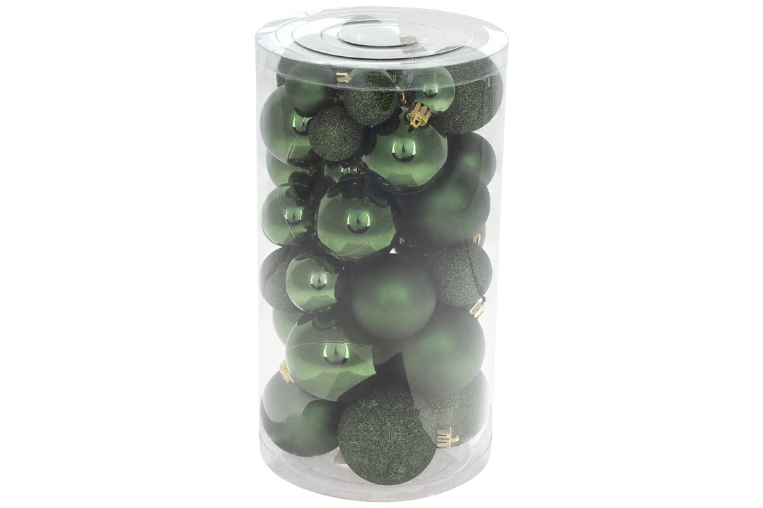 Набір ялинкових куль, колір - зеленої хвої, 40шт - 6см, 5см, 4см, 3см: 4шт - глянець, 3шт - гліттер, 3шт - матовий для кожного розміру