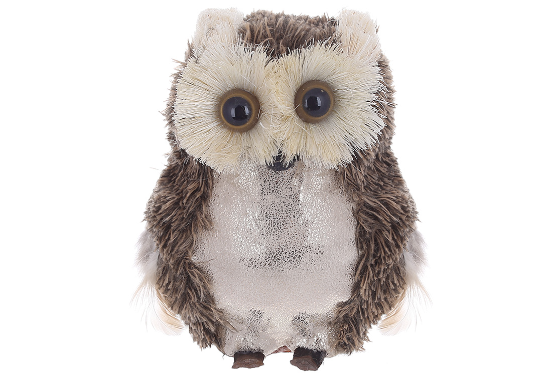 Новорічний декор Сова 16х12см, колір - коричневий із шампань.