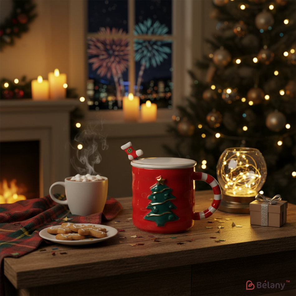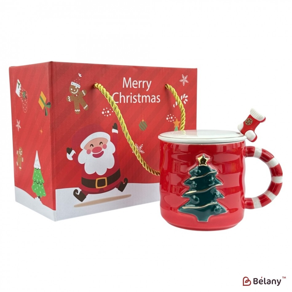 Новорічна чашка в подарунковій упаковці, 420мл, червона