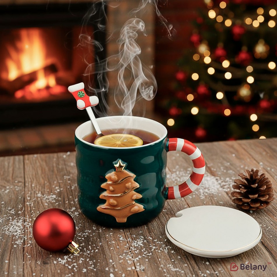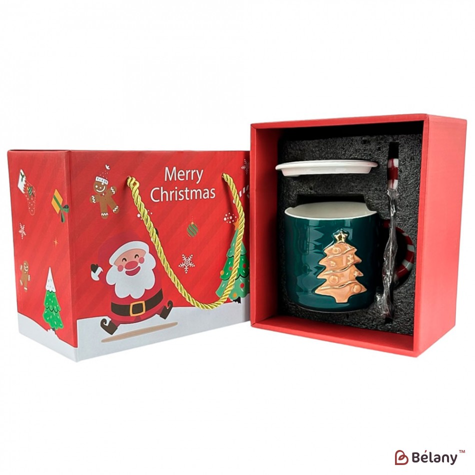 Новорічна чашка у подарунковій упаковці, 420мл, зелена