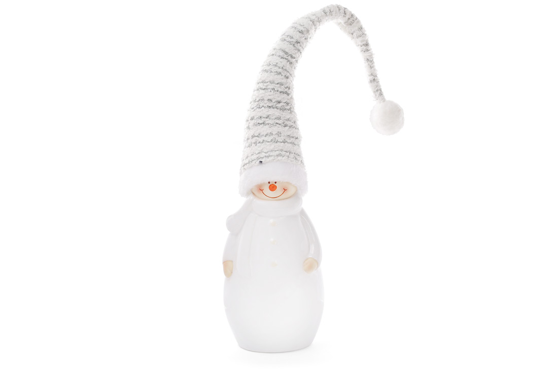 Новорічна фігура Сніговик у в'язаному ковпаку 28см