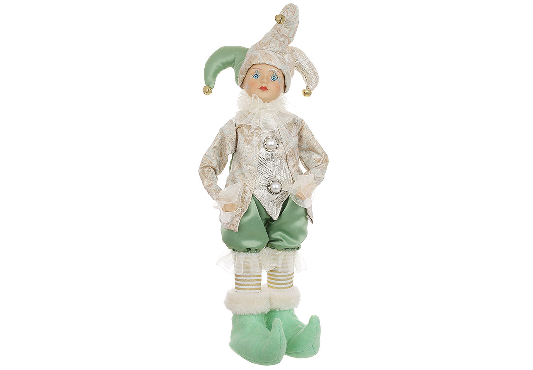 Новорічна музична іграшка Арлекін (з функцією руху голови), 45.7см, колір - золото із зеленим
