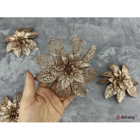 Новорічний декор "Квітка" з глітером пудровий