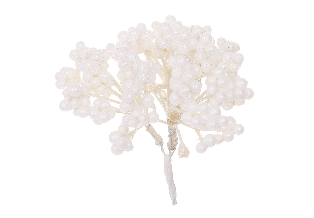 Пучок ягід у гліттері 13см, колір - білий