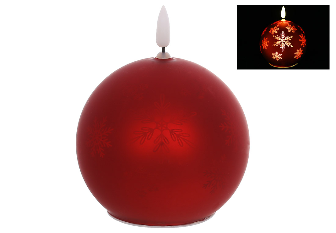 Світлодіодна скляна свічка з живим полум'ям, 10*8.5см, (3хААА не входять до комплекту), тепле біле світло, колір - червоний