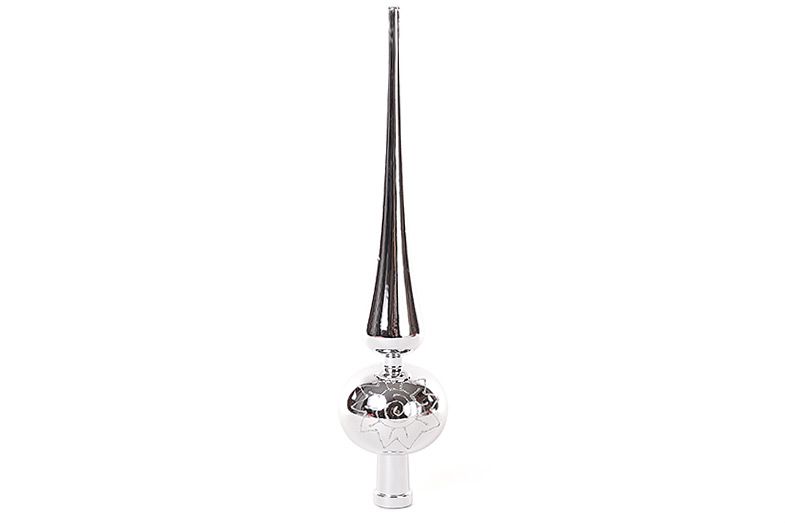 Верхівка на ялинку 25см, колір - срібло, глянець з малюнком із гліттера